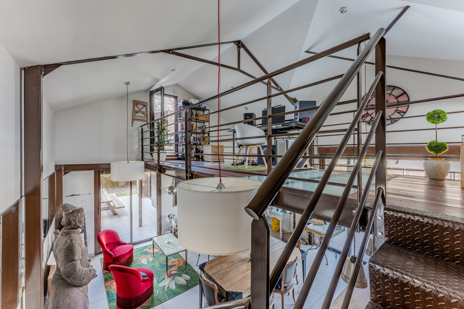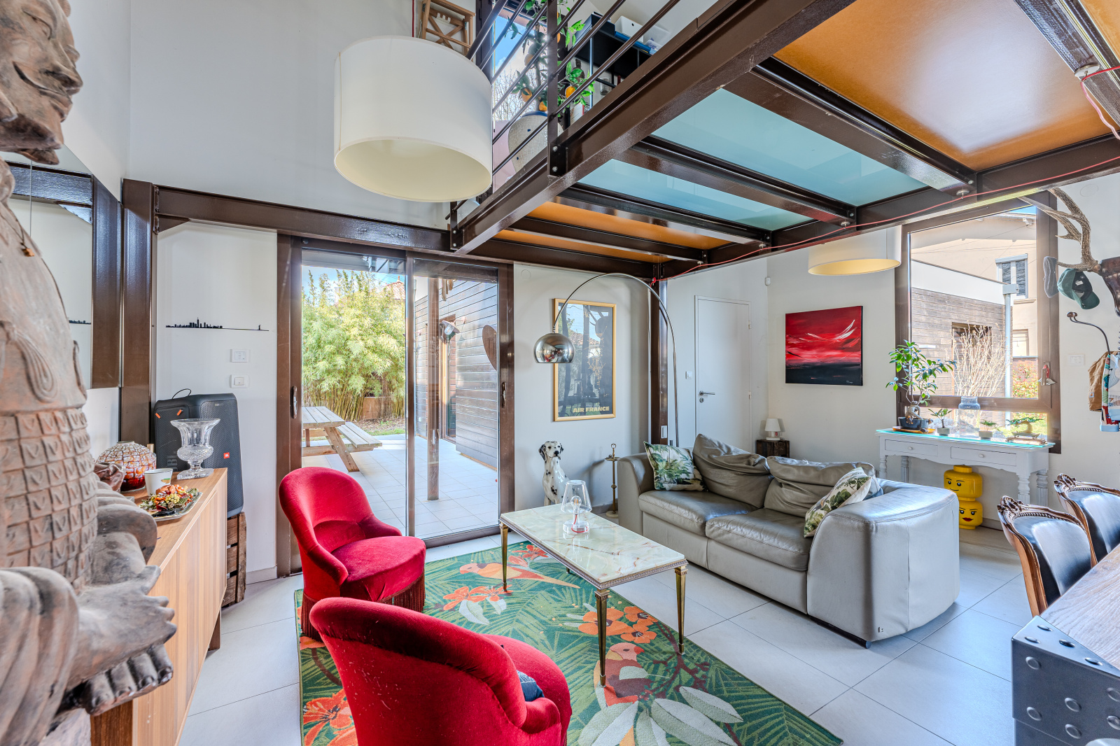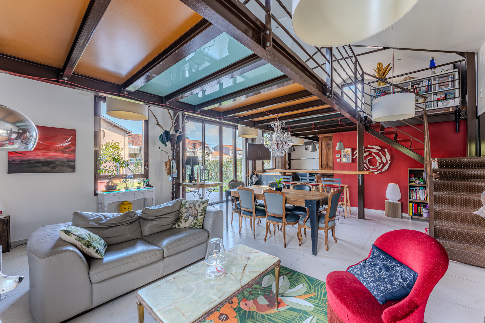 Un agencement fluide et lumineux : Dès l'entrée, vous serez séduit par les volumes du séjour cathédrale avec sa mezzanine.