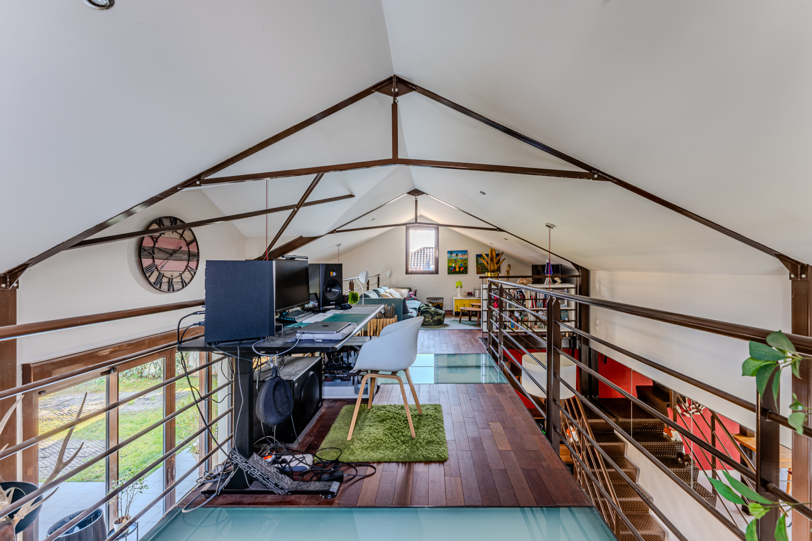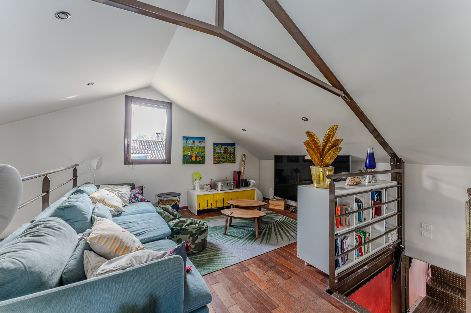 Étage : Une vaste mezzanine surplombe le séjour. Cet espace modulable est idéal pour un bureau, un salon TV ou la création d’une 4ème chambre. Elle ouvre directement sur une superbe terrasse d'été sur le toit de 35 m², véritable cocon en hauteur.